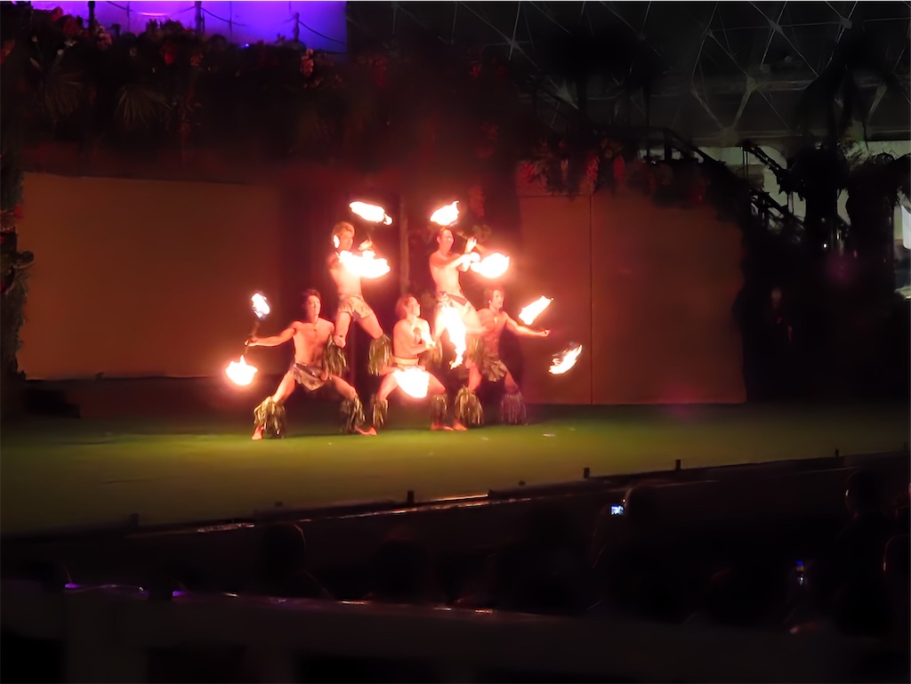 ハワイアンズに行ったら、絶対に観てほしいのがフラガールや、国内で唯一のファイヤーナイフダンサーのチーム「シバオラ」のショーです。昼と夜では雰囲気がガラッと違うので、ぜひとも両方観てください。夜のショーは全席指定ですがいちばん安いお席は300円からです。