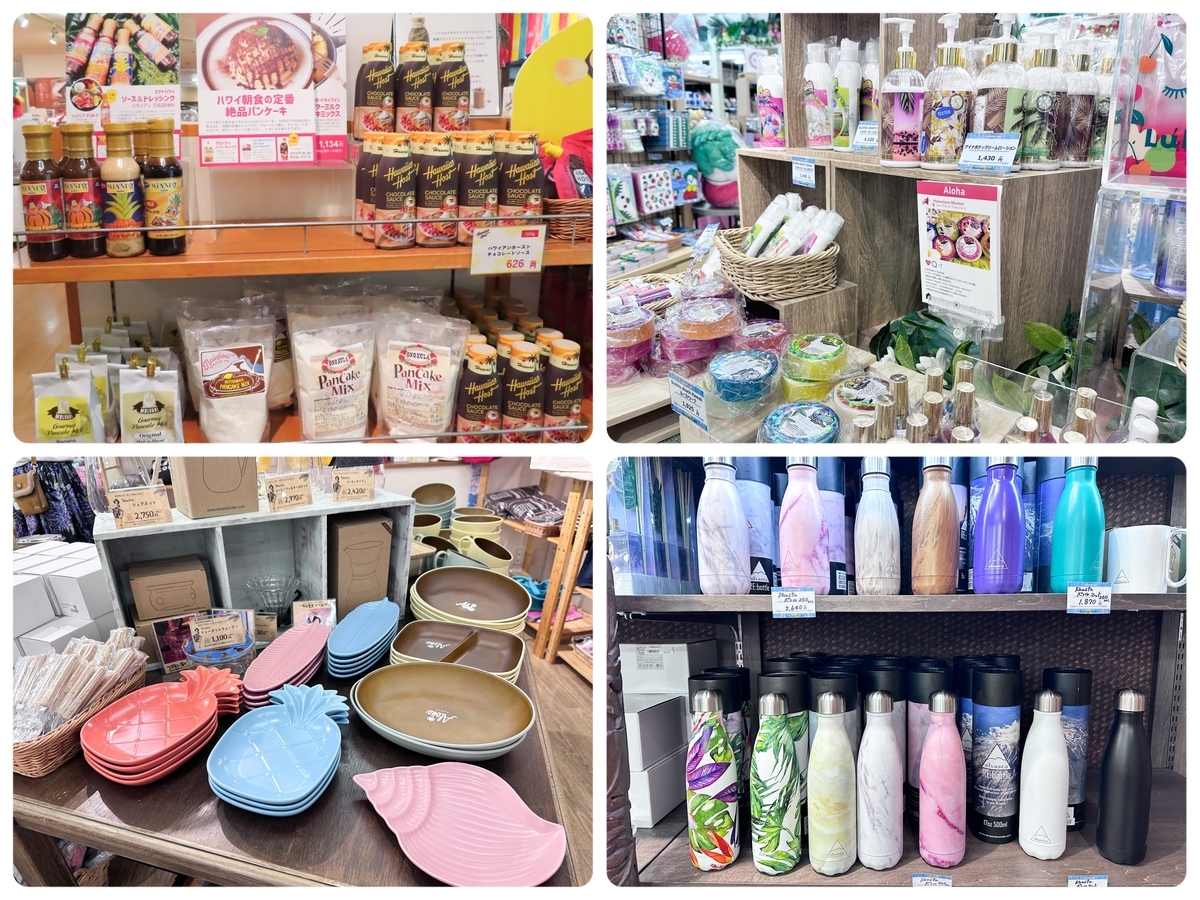 ウォーターパークにあるショップでは、ハワイのお菓子や調味料、コスメも豊富です。福島のおいしい食べ物やお酒もありますよ。
